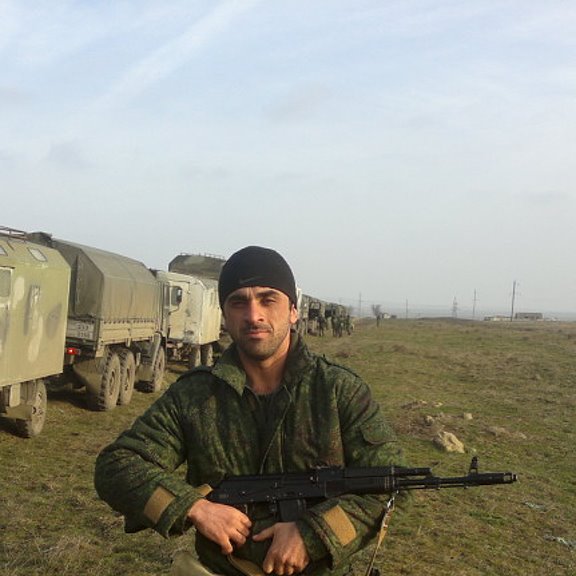 младший сержант 18 ОМСБр ВС РФ Юсупов Ризван Лечиевич сначала участвует в оккупации Крыма, а потом получает орден Мужества за внезапную смерть 13/08/14 "при выполнении воинского долга" на Донбассе. Рядом вероятно, виден край таблички Абужалилова Бийарслана Магомедовича (29/07/88, Буйнакск), водителя того же эвакуационного отделения взвода обеспечения 1 МСБ 18 ОМСБр ВС РФ, который погиб в один день с Юсуповым