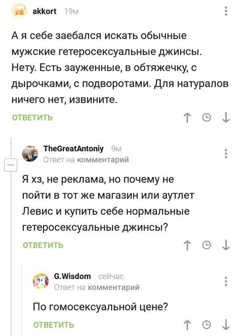 У меня средние размеры, поэтому ни в аутлетах, ни на обычных распродажах моих размеров тупо не бывает. Классические джинсы моего размера - вообще не бывают со скидкой. Пичаль, чё поделать.