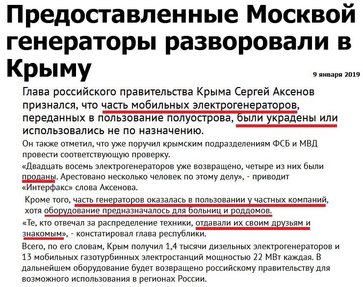 Россиюшка прислала крымской мафии генераторы