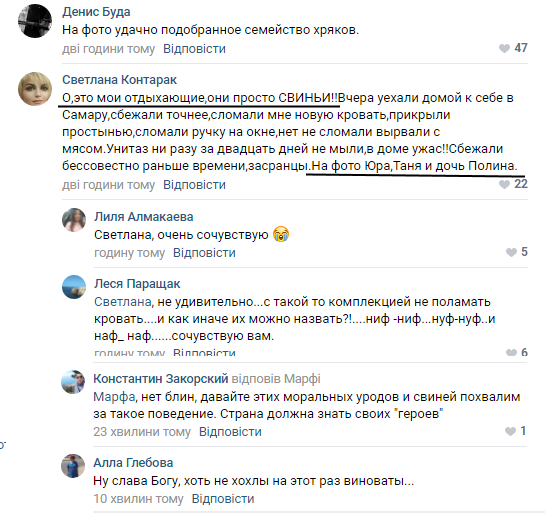 Светлане Контарак повезло что Юра, Таня и дочь Полина не прихватили с собой кровать. Эти могут. Судя по их комплекции и унитаз прихватили бы и побежали бы так налегке на роисю в срамару.