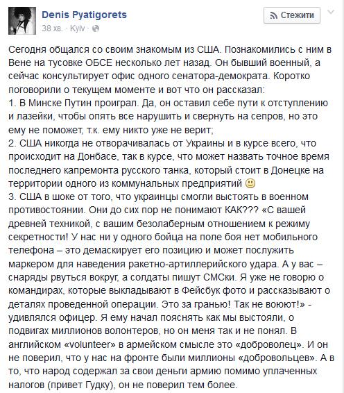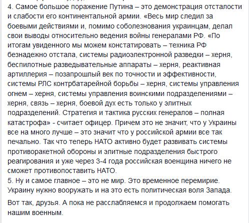 Поки не зрозуміло, як ставитись до цих перемовин, читав чо євродипутат від Польщі назвав ці домовленості пожертвуванням Україною Меркель і Оландом заради економічних зисків Німетчини і Франції. Чи радіти, чи плакати покаже час. Ліпше б нам надали побільше сучасної зброї.
