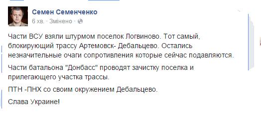 Тем временем окружённых в Логвиново на трассе Артёмовск-Дебальцево добивают