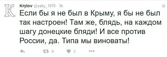 Dec. 6th, 2015 10:11 pmКрымская ватка таки допетрала, что её в очередной раз покормили лапшой на киселевиденье и никакого-такого энергомоста в Крым нет. Потому начинает выдумывать совершенно фантастические способы обеспечения оккупированного Крыма электричеством. Ватная Политичанка транслирует слухи про АПЛ, которая якобы где-то пришвартовалась возле Феодосии и даёт ток в систему. Специально для АПЛ-сектантов, когда они ещё в прошлом году призывали встать с колен и ввести АПЛ в Чёрное море, россиянами было разжёвано: появление российской АПЛ, равно как и прочего крупного военного судна, в акватории Чёрного моря невозможно.