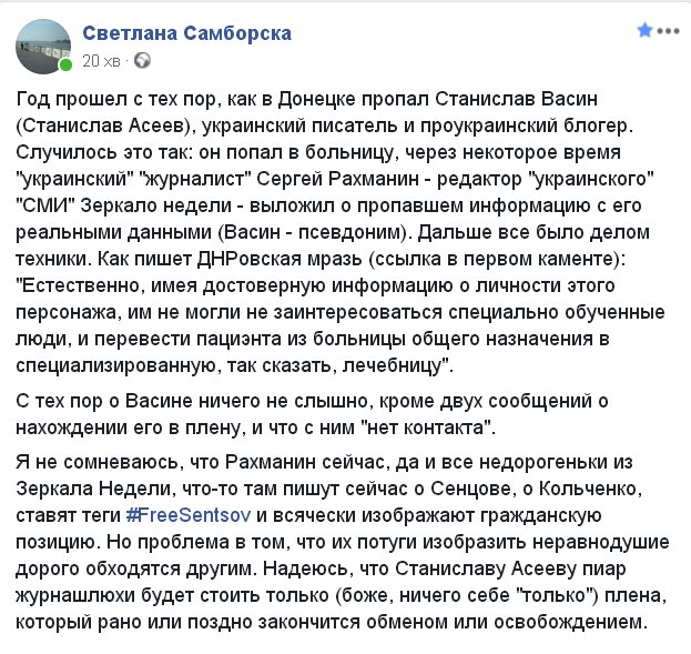 Якобы сбежавший недавно из донецкой клиники после операции калорадский поциент с дренажом до сих пор так и не обнаружен. И все поняли почему поиски успехом не уверчались ибо в дыныровских подвалах искать не пускают