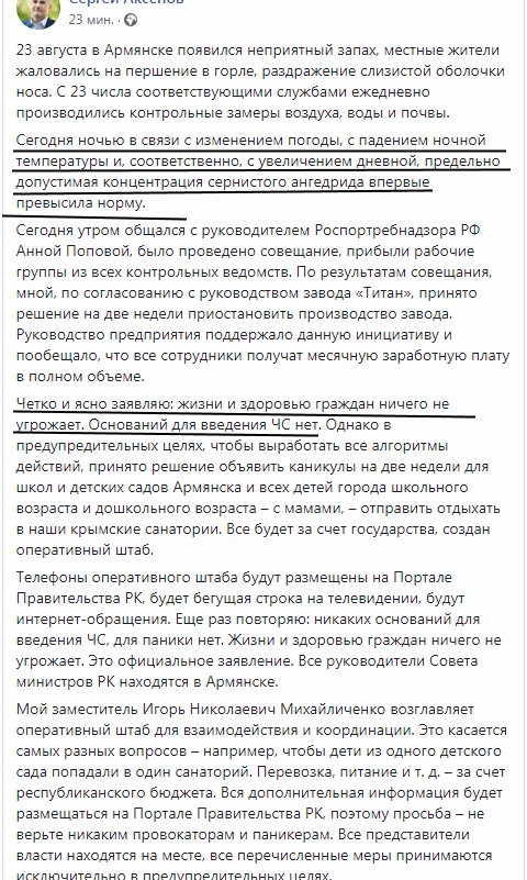 Sep. 4th, 2018 02:26 pmНесмотря на то, что кислотный смрад на севере Крыма неопасен (по заверениям оккупационных властей), население города Армянска и окрестностей частично эвакуируется. Пока на пару недель, а там... Наверное жители Припяти в 1986-м тоже думали, что эвакуируются на пару недель. Эвакуация касается детей и их матерей, остальным велено держаться. Завод Титан пару недель будет простаивать.