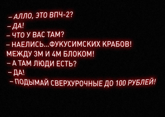 Врачу, лечившему пострадавших при хлопке под Северодвинском, заявили, что Цезий-137 в его организме появился после поездки в Тайланд, ты, мол, там наелся "фукусимских крабов". И пообещали сверхурочные - 100 рэ/час.
