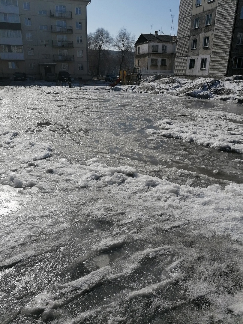 Из управы прислали трактор, он прогрёб от лужи канаву - затопило весь двор и начало заливать подъезды