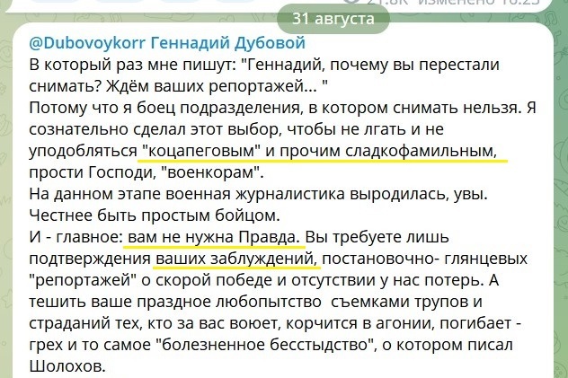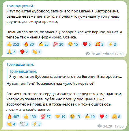 Тринашка Гузёнок выяснил, что усопший Дубовой, как заправский гиркинец, был из фракции антипригожинцев и потешался над ликвидацией незадачливой верхушки Vaгинеровцев. Всё, комендант - дави ещё!