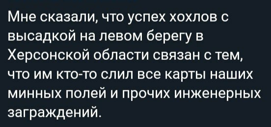 Nov. 7th, 2023 04:37 pmВчера прочёл историю о том, как недоумок, являющийся полковником ЗСУ, ворует боевые гранаты для того, чтобы подарить их на день рождения своему корешу майору, который трудится помощником аж у Залужного, в результате банкета с гранатами майор погибает... А тут ещё кто-то велит бойцам 128-й бригады вблизи линии фронта организовать построение и те послушно этот бред выполняют, а куда прилетает ракета... Жёсткий естественный отбор в действии. Хорошо, что у нас не вся армия такая иначе давно бы всё закончилось трагедией для всего народа