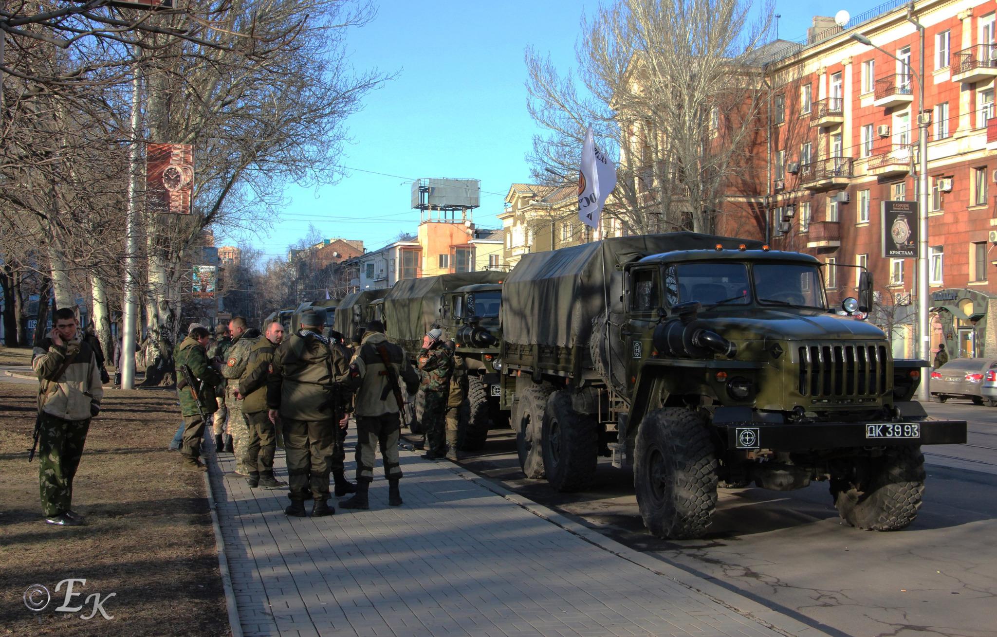 Калорады на оккупированных территориях Донбасса вчера устроили выходной в работающих учреждениях. Свезли грузовиками массовку на пл.чЛенина. Вечером устроили салют - народ думал, что обстрелы и фосфорные бомбы.