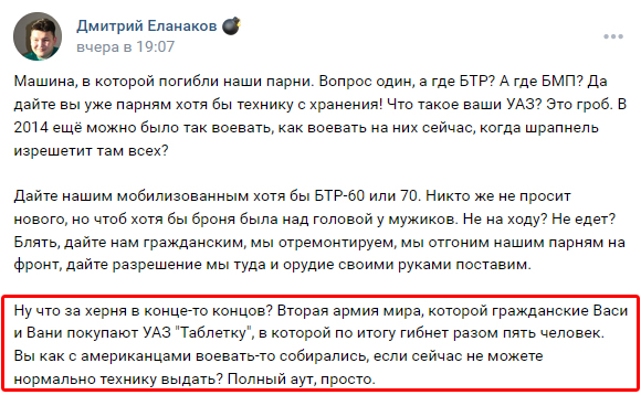 Горноалтайские нищеброды купили ZVOшкам Буханку, те набились внутрь - в итоге 5шт. 200-х. Эпично просто каким пафосом сопровождалась отправка этой тарантайки на фронт -