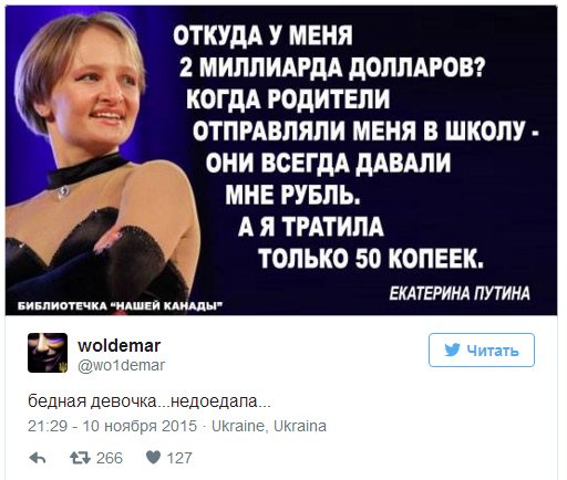 (http://klimchugynkin.livejournal.com/634718.html) пишучи: [...] Оригинал взят у в Дочка Путина [...]