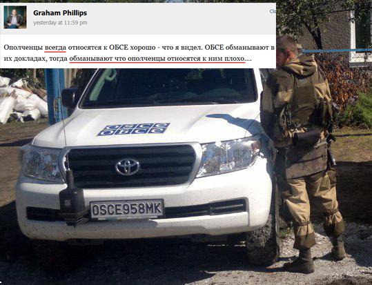 Дивно якось, показуха, ОБСЄ це неофіційна служба таксі для сєпарів, ну і розвідкою для них займались, хлопці які на самому передку були, цікаві речі розповідали, але в ефіри не пішло. Посварились, або швидше за все не внесли абонентську плату і ОБСЄ заморозило розширений пакет послуг.