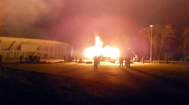 Похоже на то (въезд-парковка со стороны Стадионной?). И работают, судя по всему, куда-то в направлении ДАПа. Хотя два других орудия направлены куда-то восточнее...