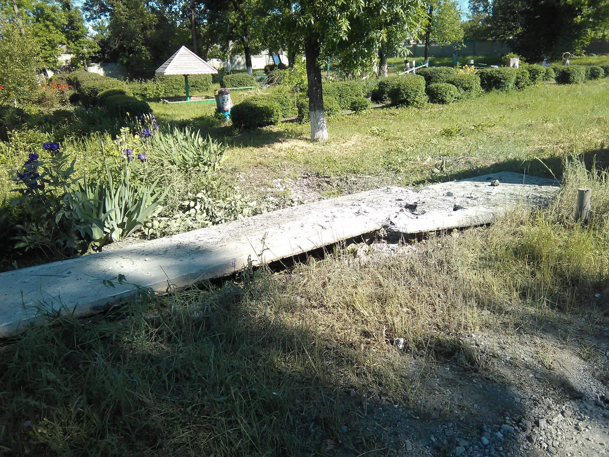 Полагаю это воронка от 120-мм мины. Отлично видно направление прилёта - с калорадских позиций у
