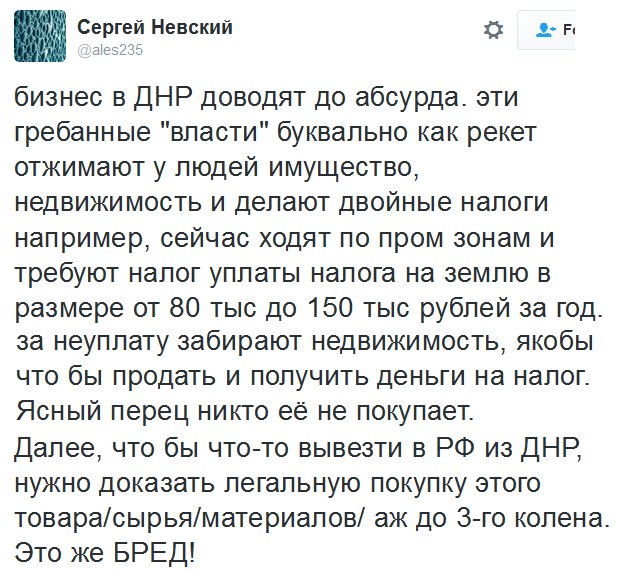 Ни бизнеса,ни жизни не будет пока там пропутинские бандиты.