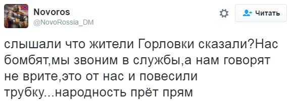 фу, хохлобыдло, какое же ты малограмотное и лживое существо Жизнь в Луганской и Донецкой народных республиках одинакова с уровнем на территориях бывшей Украины... Но если бы не хохлотеррористы - жизнь лучше. Не сря же ваш Главпидор сказал: ваши дети пойдут в школу, а наши - будут сидеть в подвалах. В этом вся суть украинства: тупой, нищей, лживой, трусливой секты карателей и шлюх. Видел очереди в секонд-хэнды в Киеве, во Львове, в Черновцах. После евромудана среднестатистический укр из бедного превратился в нищего, так что не надо ля-ля