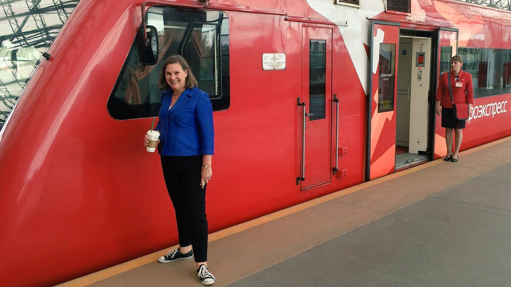 А Нуланд, в отличие от Украины, реально опустили))) Вон она около аэроэкспресса из аэропорта позирует. Это значит, что эту ш...ху даже в аэропорту не встретили))) Так что лесом и болотом с кофе из Макдональдса на аэроэкспрессе едет в Москву за 400 рублей билет шурует госпожа Нуланд!