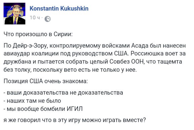 Куку, кукушкин, а что в июле воздушно-космические войска РФ расхерачили целую американскую базу в Сирии, мы забыли? Причем когда до нас америкосы довели, что бомбим, мы не остановились, а продолжали.
