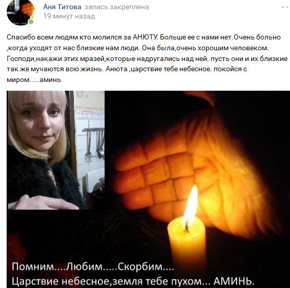 Не знаю насчет именно этой овцы, может быть она и ни в чем не виновата, но тем не менее - всем "сослуживцам" ейного супружника по банде искренне желаю того же самого. Сначала с женами-сестрами-матерями-блядями, а потом и с ними самими пускай случится то же самое. В самой извращенной и болезненной форме. Аминь.