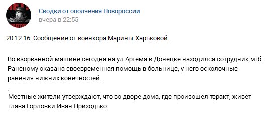 А чем взрывали не знаешь? Никакого особого повреждения машины на фото не видно, может просто гранату заложили под левое переднее колесо (со стороны водителя)?
