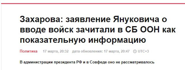 Путин: "...Как вы знаете, у нас есть прямое обращение действующего и легитимного, как я уже сказал, президента Украины Януковича об использовании Вооружённых Сил для защиты жизни, свободы и здоровья граждан Украины..."