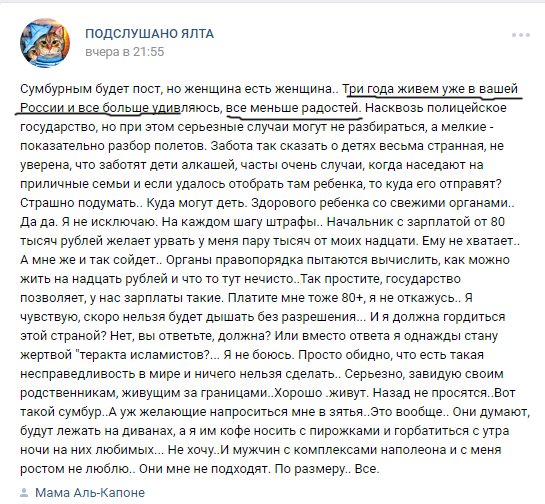 А Крым вообще отдельная страна. Из СССР он вышел на правах автономии со своим президентом и своей конституцией. Украина в 1996 году грубо нарушила права крымчан и оккупировала их земли. Чему удивляться, что они при первой возможности отвалили из этого Шапито.