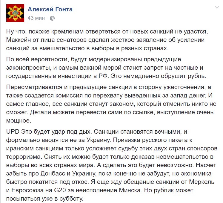 Date: 2017-06-08 12:04 pm (UTC)Опять разговоры о санкциях