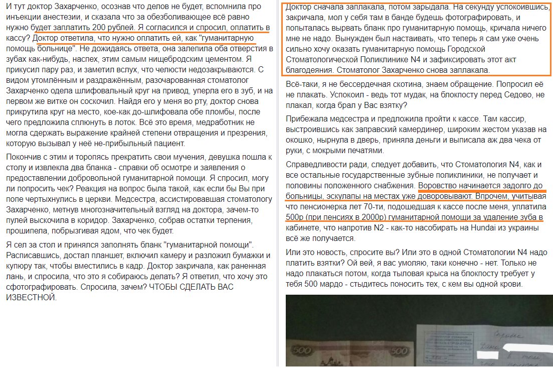 Дура - майно в Україні, "они говорят, что это луганда начала" і т.д. і сидить на сраці серед іпанутих. Так - стала на лижі, відкрила кабінет в Києві (ще й поміч дадуть, як переселенці) і цілком офіційно, без усякої пиздології 300-500 гривень за зуб. Нікого не боїшся, закон охороняє, всі ходять охають "бідна дівчинка, все покинула і тепер в Україні почала все спочатку. Героїня." Коротше, Марк Аврелій казав, що кожен коваль свого щастя, пані Захарченко - саме з таких. Ну, і взагалі їй пощастило, міг пристрелити прямо в кабінеті. Покажіть їй цей коментар, хай зараз тікає, поки хундай ще її, бо взавтра по наводці прийдуть "комісарі", чоловіка повісять, все заберуть, а її місяць гвалтуватимуть, а потім закопають в лісосмузі.