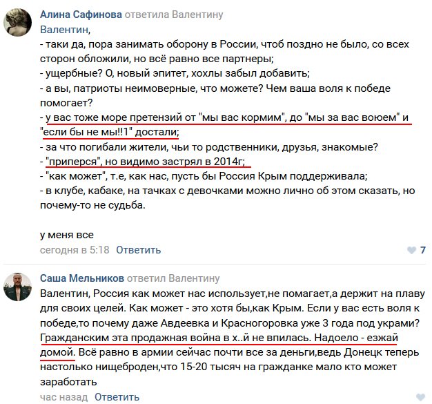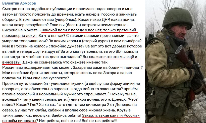 коли до їх ватних голів ОДНОЧАСНО дійде, що ця війна не потрібна? Що вони воюють за інерцією подій війни 2014 року і на енергії нових членів незаконних військових формувань.