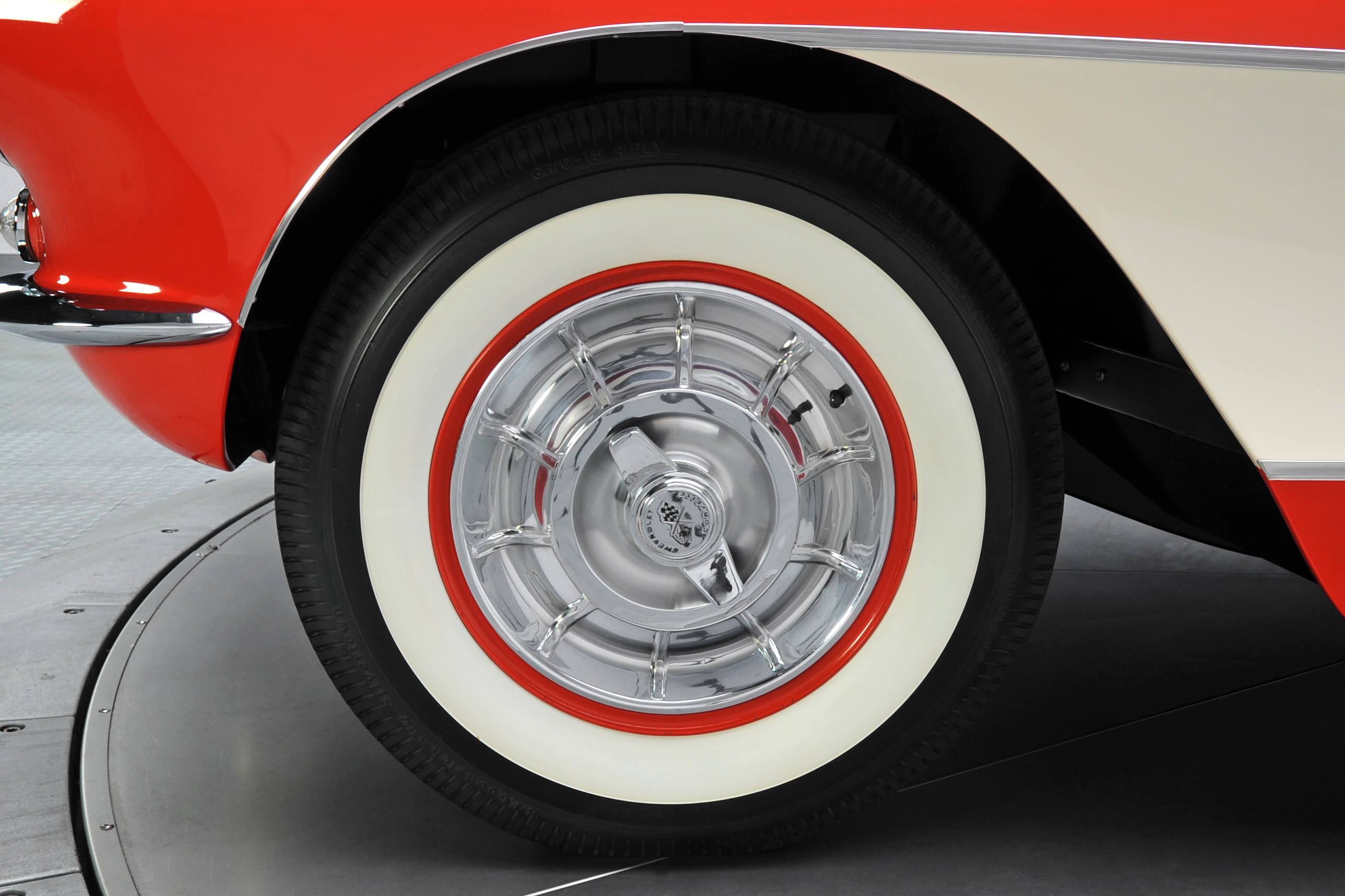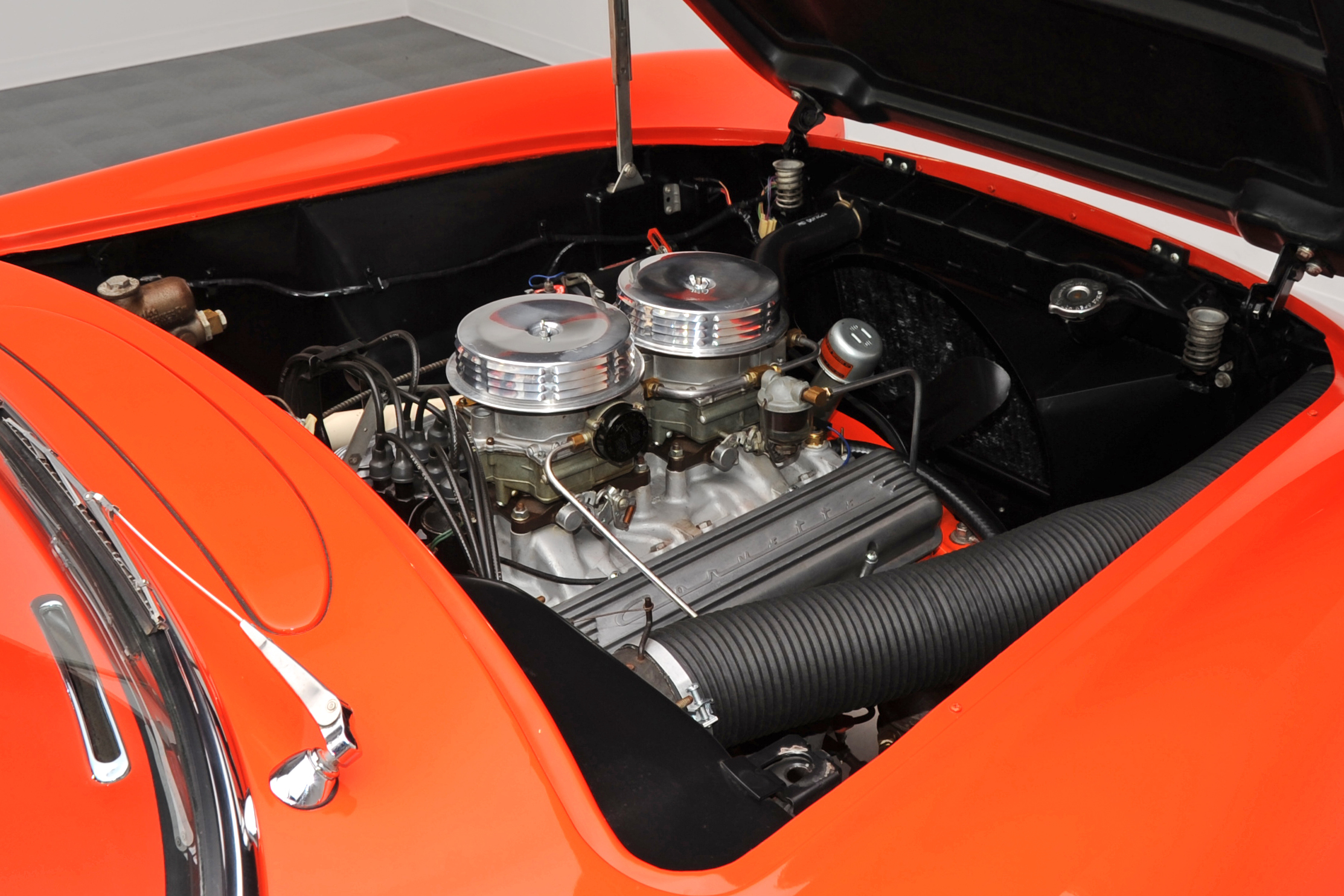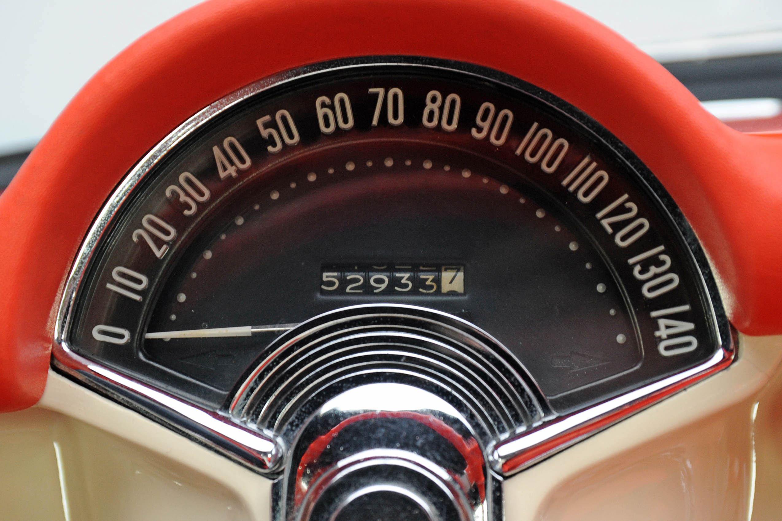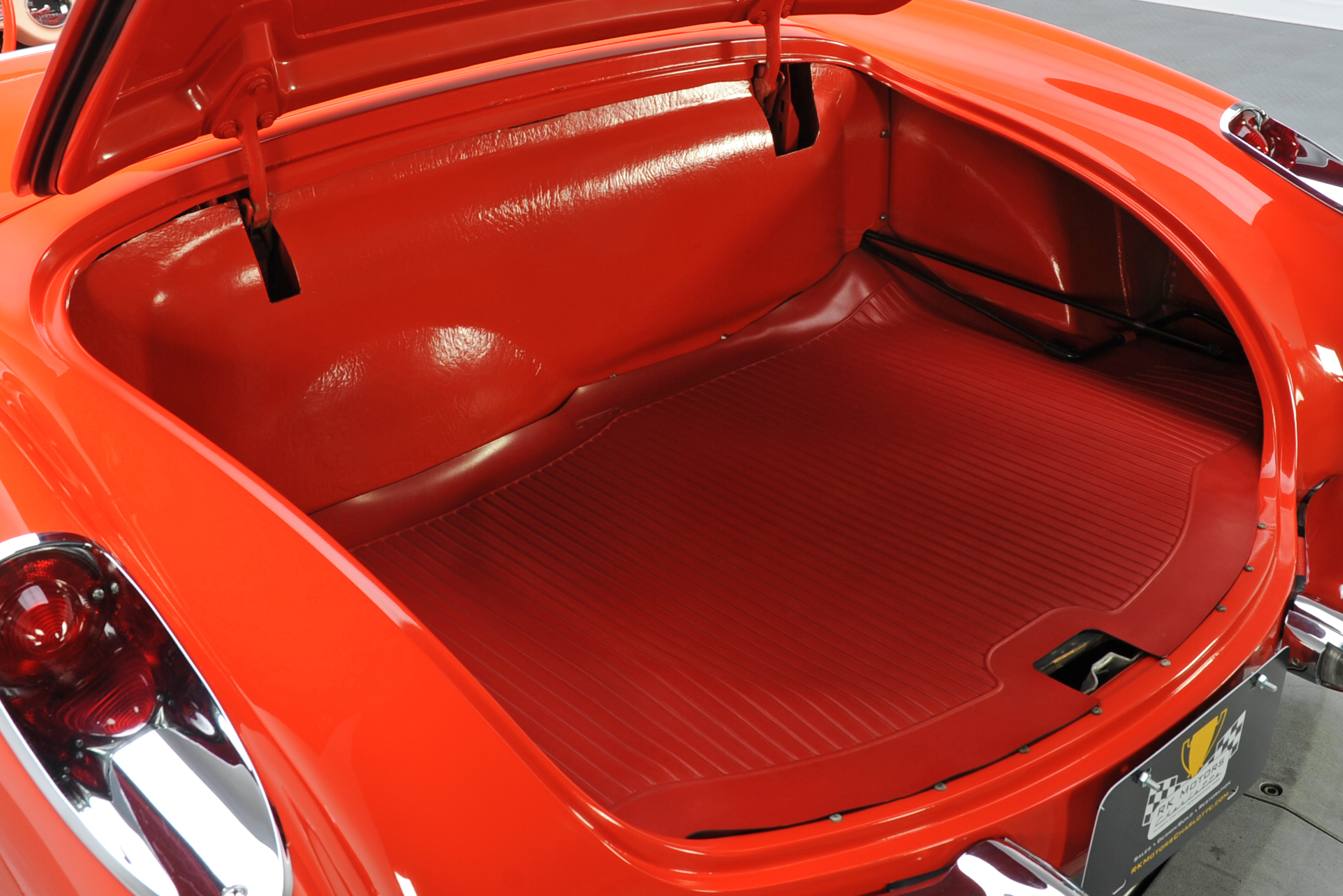 Первое поколение спорткаров Шевроле было представлено публике в 1953 году и выпускалось вплоть до 1963 года. Кузов стеклопластиковый, движок сперва был рядной шестёркой с мощностью в 150 лошадей и авто было не шибко уж и резвым даже на то время, что закономерно привело к плохим продажам спорткара, на который Шевроле делало немалые ставки. Ситуацию удалось выправить заменой двигателя - сперва стали устанавливать V8 на 4.3 литра, затем 4.6 литра, как на представленном экземпляре, мощностью 283 лошадки и автомобиль полетел - разгонялся до сотни за 7 секунд. На Дайтоне Корвет разогнали до 241 км/ч, что незамедлительно сказалось на рыночном спросе - продажи повалили. Продавался автомобиль по цене от $2,774 до $4,038 за последние самые навороченные модели.