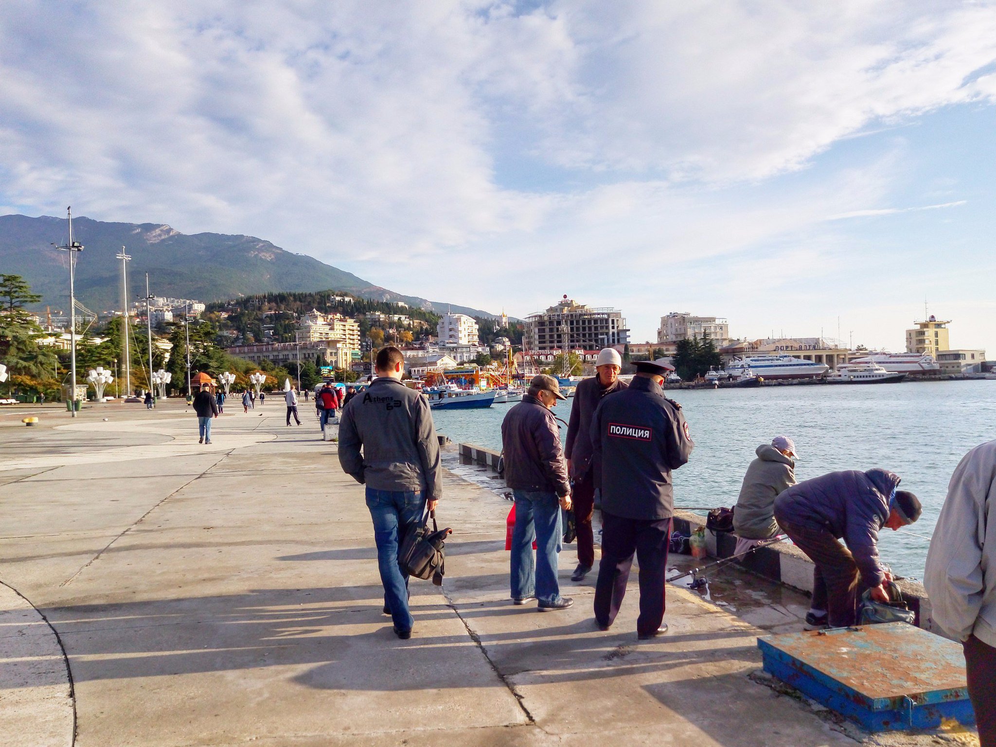 вот рыбаки на ялтинской набережной - это же враги, самостоятельно, без разрешения, ловят рыбу и не платят налогов! Объедают Россиюшку! В кутузку их!